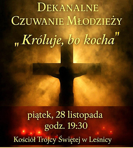 Dekanalny duszpasterz młodzieży zaprasza na listopadowe czuwanie dla młodzieży, które odbędzie się...